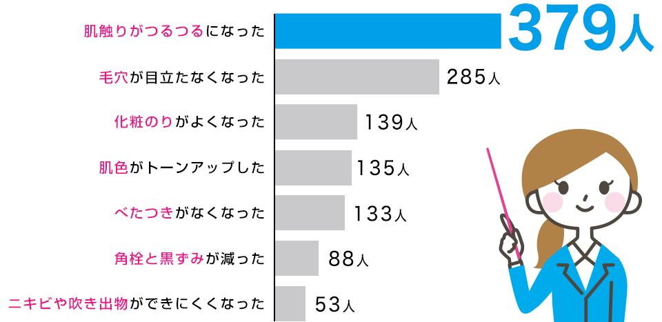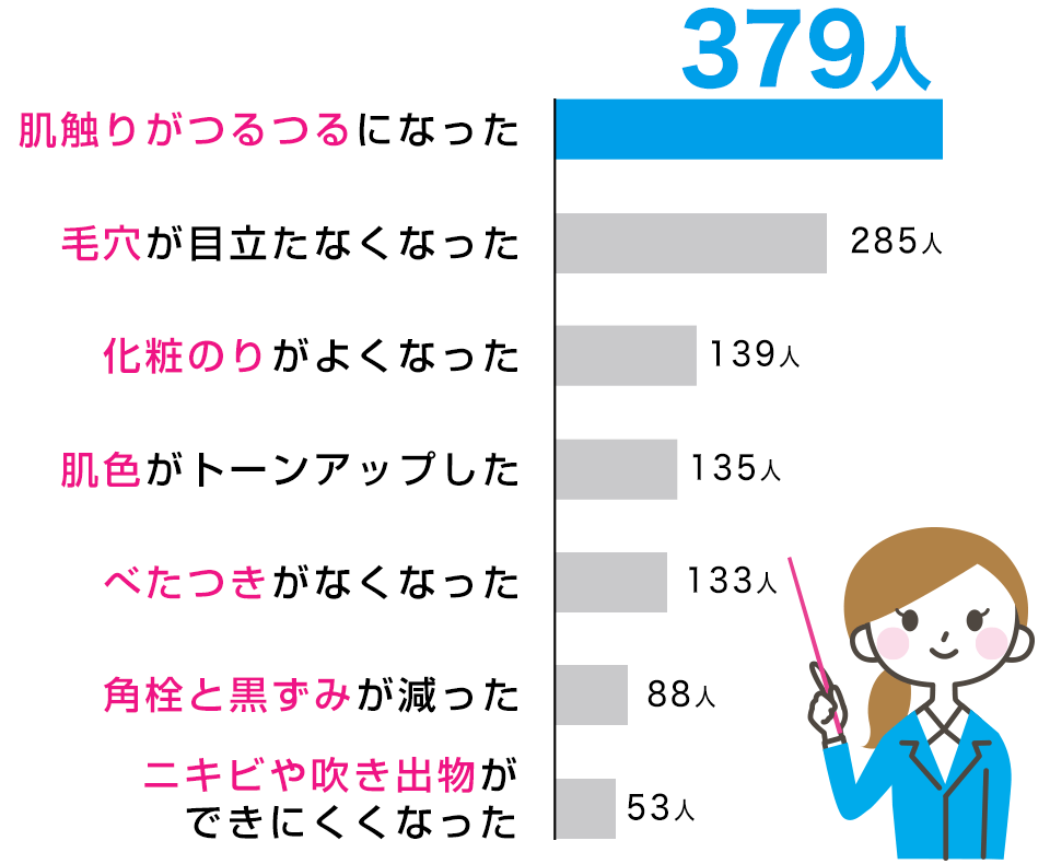 コツコツと毎日続けることが実感につながるみたい。でも、もしもお肌にトラブルを感じた場合は無理せずごあなたのペースを見つけてください。グラフのように3日おきにご使用いただいても効果を感じている方もおられます。