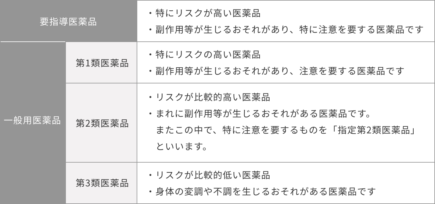 | 取り扱う要指導医薬品、 一般用医薬品の区分 |